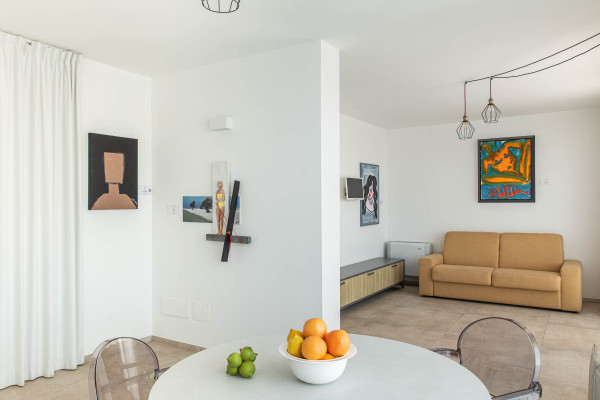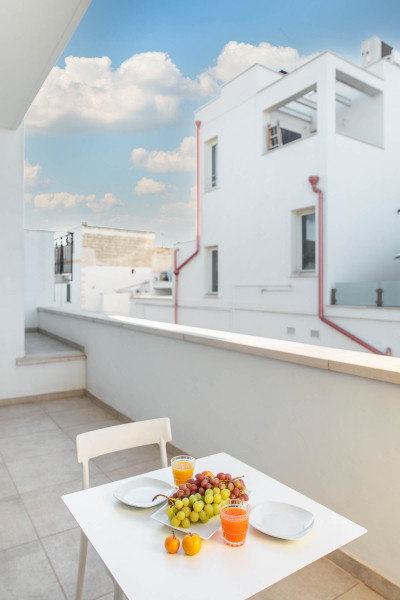 The furnishings define a sincere and warm style. The exposed stone, the suggestive views of the central streets of Domenico Modugno's city are pure poetry. Each of the king suites is composed of a living area directly overlooking the central Piazza Aldo Moro and a sleeping area, with king size beds. (n.3, n.6, n.7)